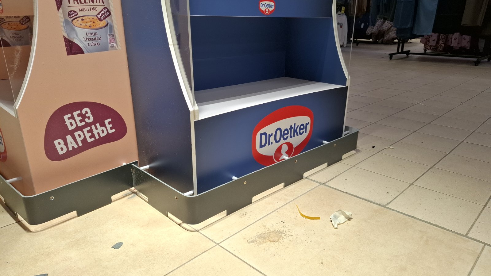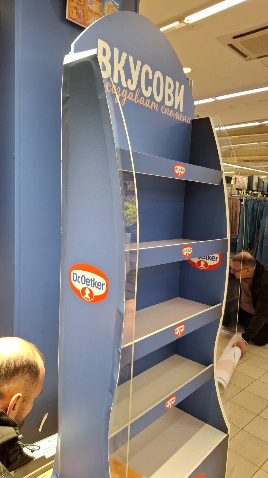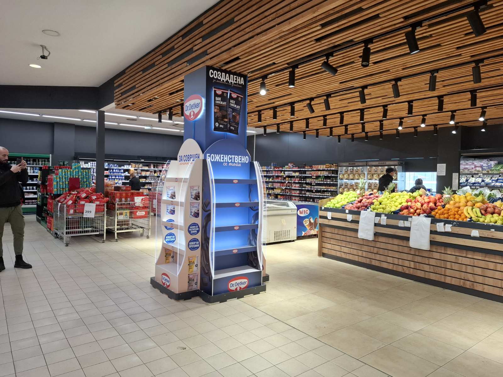 Како дел од современите in-store маркетинг решенија, реализиравме осветлен брендиран столб од четири страни за брендот Dr. Oetker, поставен во продажниот објект Кит-Го Велес. Ова POS решение е дизајнирано да обезбеди 360° видливост, максимално привлекување на внимание и постојано присуство на брендот во просторот каде што се носи куповната одлука.