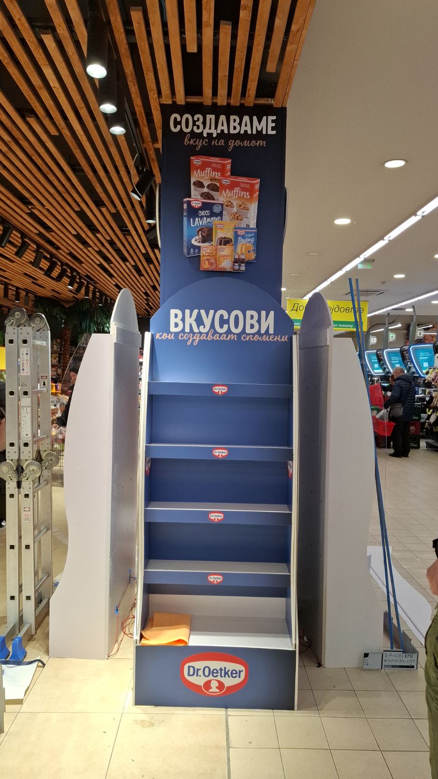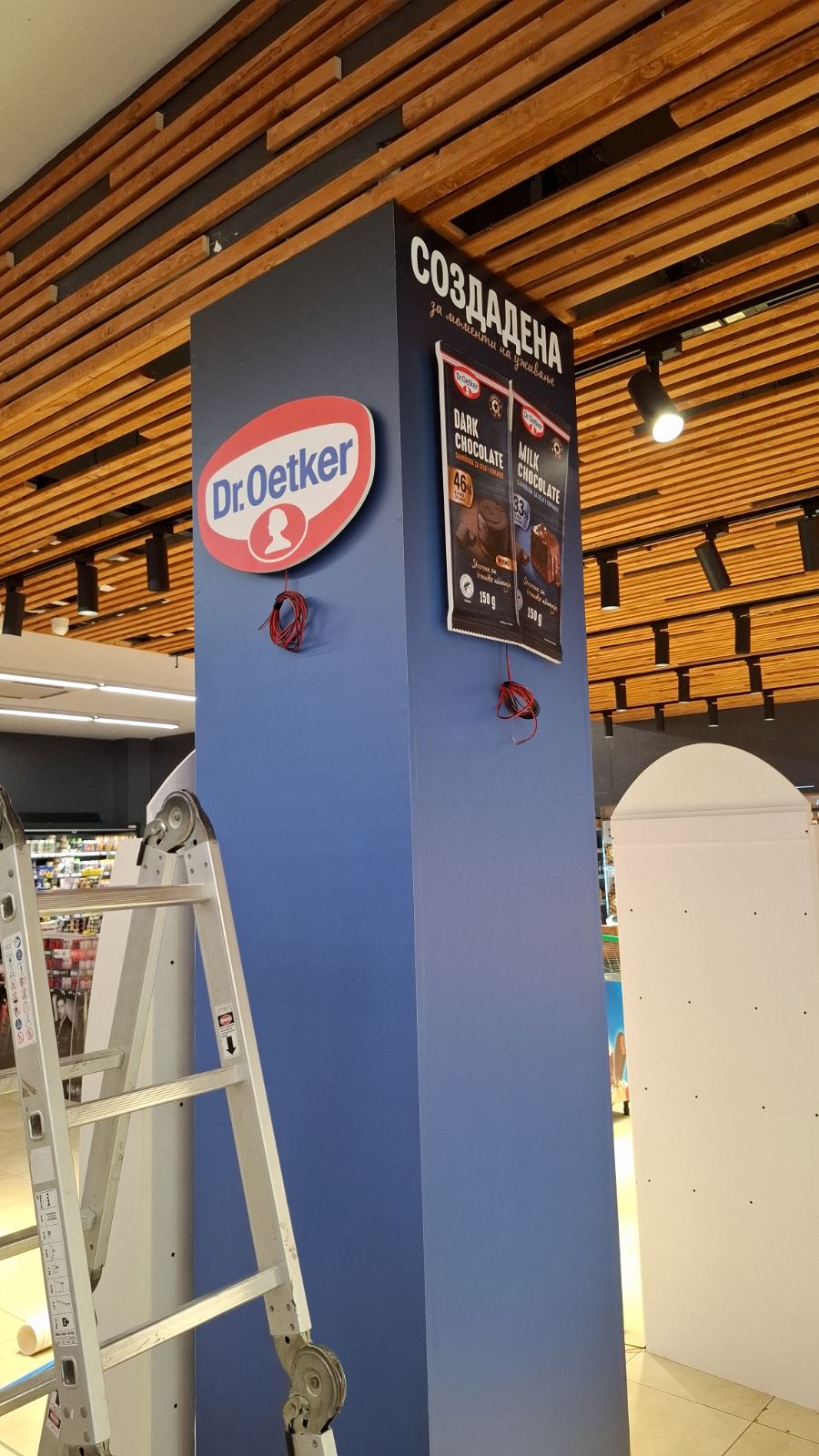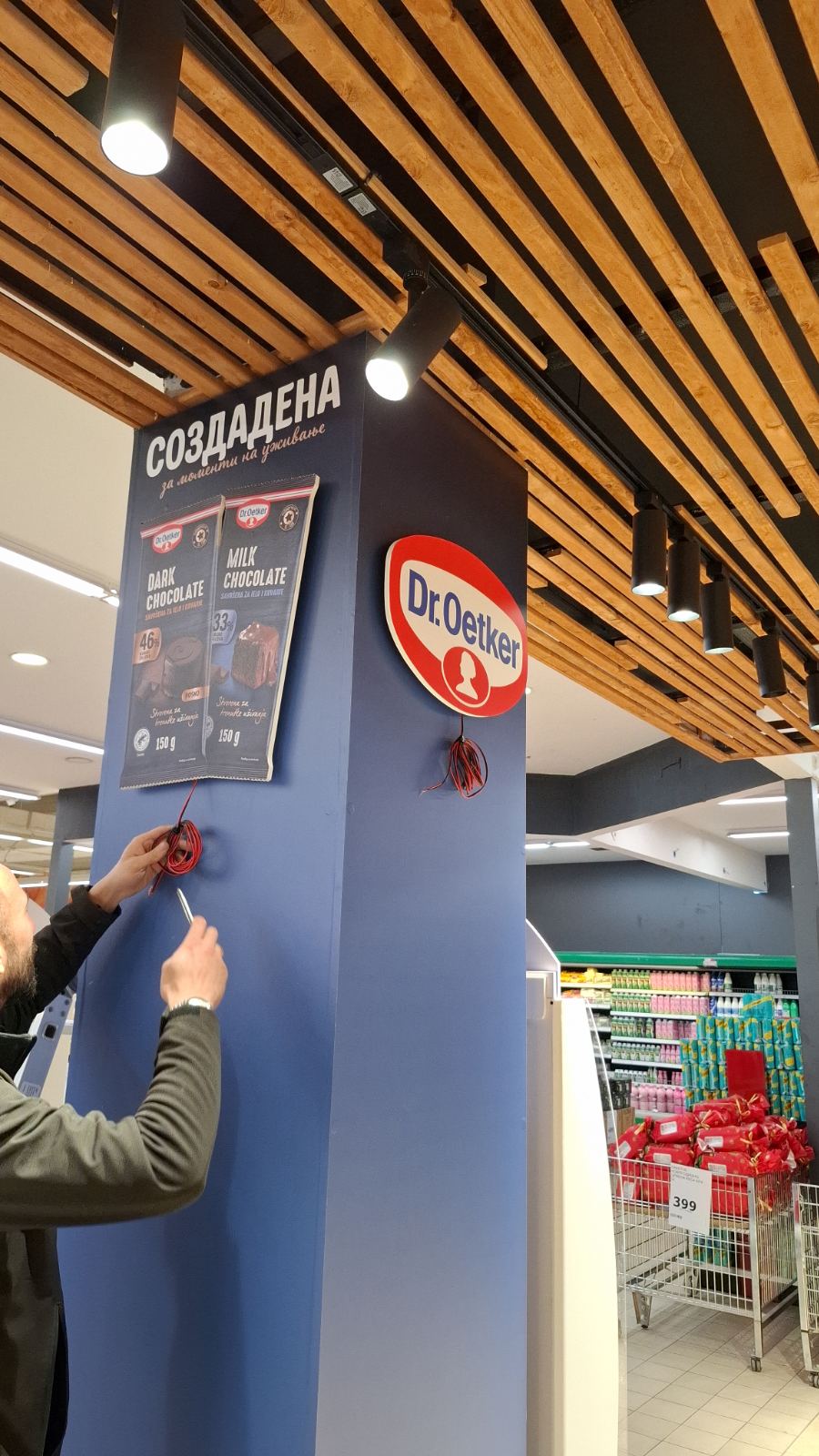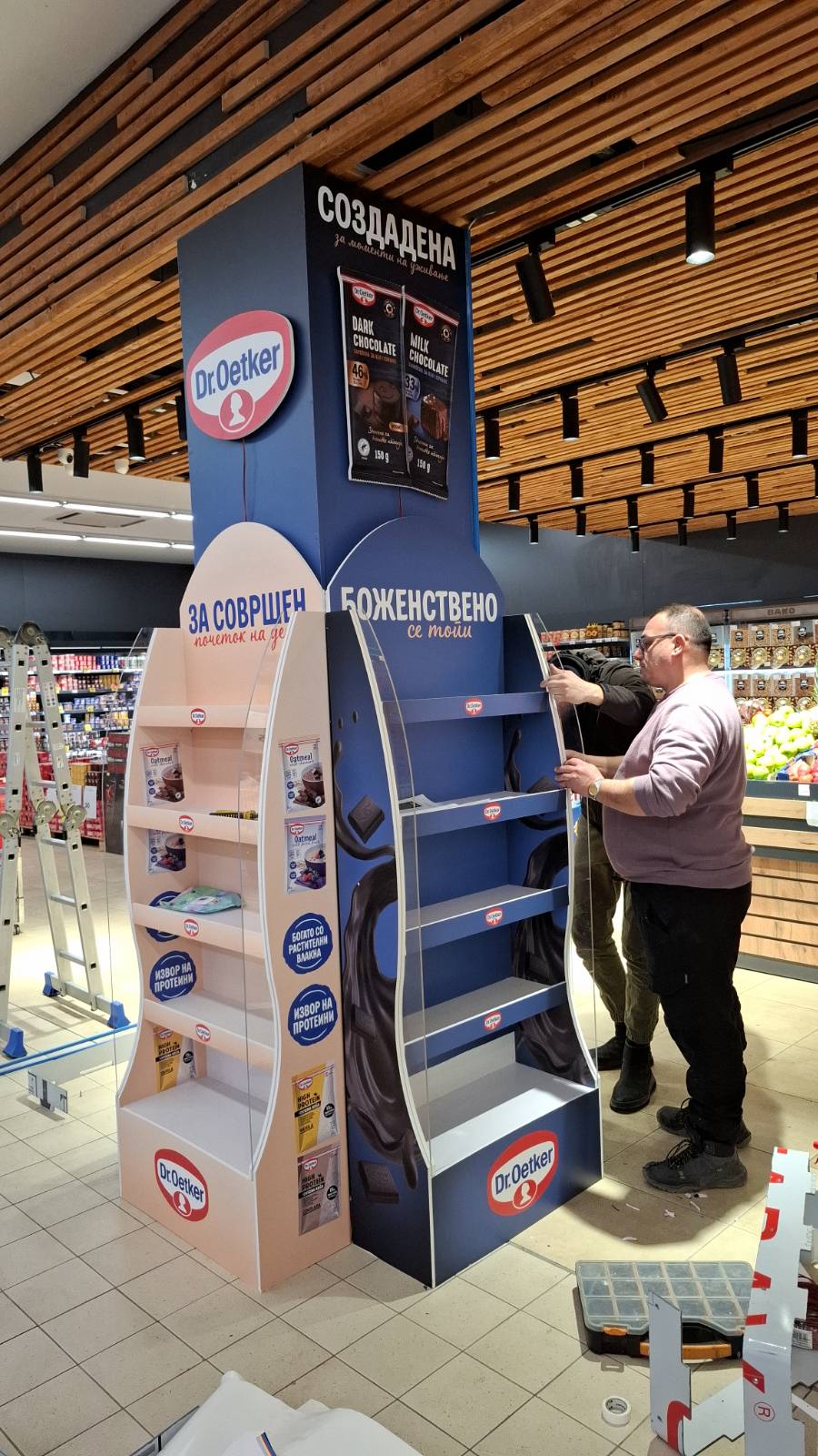 Како дел од современите in-store маркетинг решенија, реализиравме осветлен брендиран столб од четири страни за брендот Dr. Oetker, поставен во продажниот објект Кит-Го Велес. Ова POS решение е дизајнирано да обезбеди 360° видливост, максимално привлекување на внимание и постојано присуство на брендот во просторот каде што се носи куповната одлука.